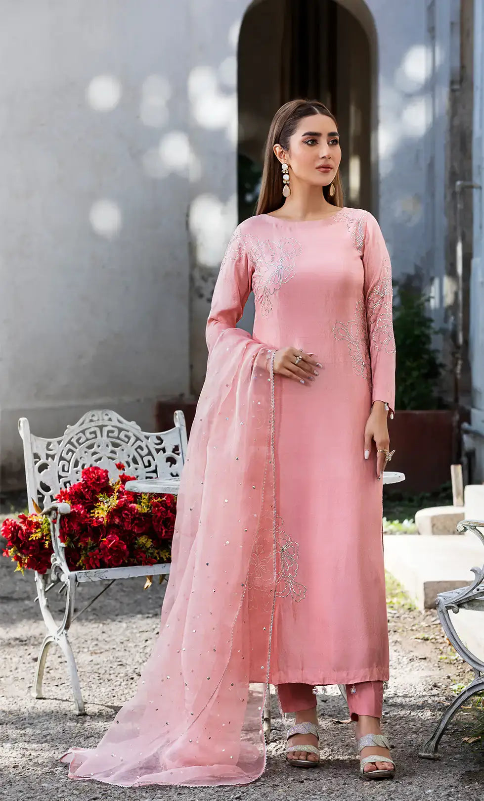 The distinguishing feature of this dress lies in its meticulous detailing, where every stitch is a testament to the artistry embedded in South Punjab's rich heritage. The shirt and dupatta are adorned with hand-embellished Pure Mukesh work, elevating the ensemble to a level of timeless grace and cultural significance. The intricate patterns and delicate craftsmanship resonate with the traditions of the region, offering a unique and captivating aesthetic.